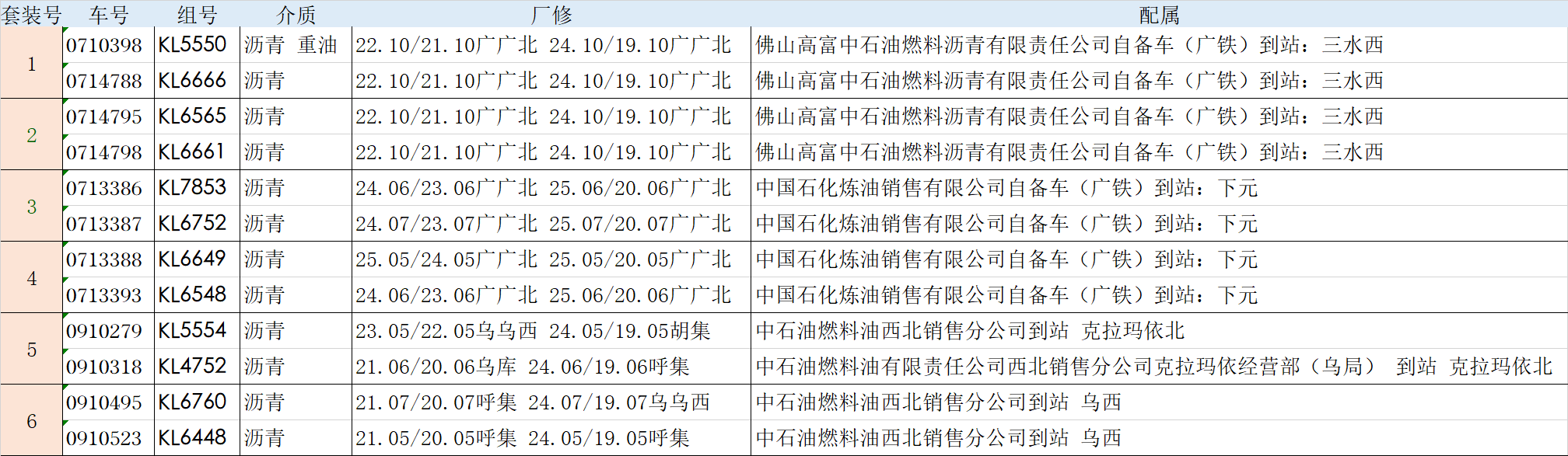 本次一共制作六个套装,供12个车号。
